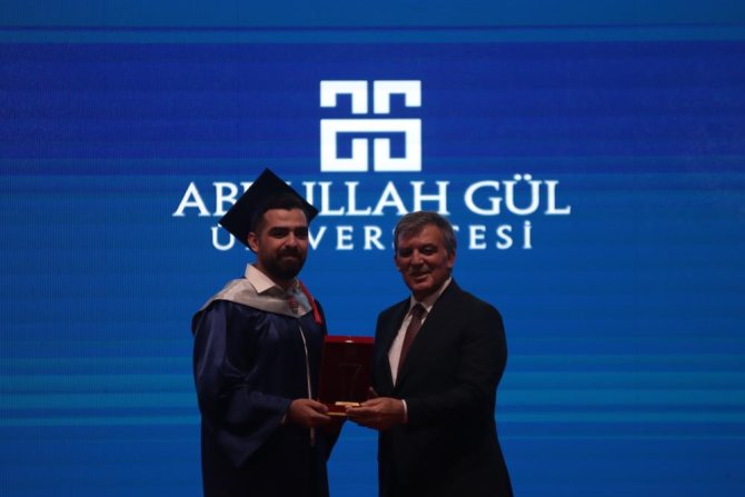 11. Cumhurbaşkanı Abdullah Gül, Kayseri'de Abdullah Gül Üniversitesi (AGÜ) mezuniyet törenine katıldı. Saygı duruşunda bulunulması ve İstiklal Marşı'nın okunmasının ardından törenin açılış konuşmasını yapan AGÜ Rektörü Prof. Dr. Cengi Yılmaz, “Tarih boyunca ve tüm dünyada üniversitelerin birbirleri ile olan rekabetlerinde en belirleyici faktör ne kadar köklü bir üniversite oldukları ve bununla bağlı olarak mezun sayılarıdır. Bir üniversitenin en değerli varlıkları ve rekabet gücü mezunlarıdır. Yıllar içerisinde birikmiş ne kadar çok mezununuz varsa, mezunlarınız ne kadar etkili pozisyonlar elde etmişlerse ve üniversiteye bağlılıkları ne kadar güçlüyse o derece güçlü bir üniversite olursunuz. AGÜ henüz 14 yaşında bir üniversite olarak ve toplam bin 292 mezunu ile çok önemli rekabet faktörü açısından kritik eşiğin henüz biraz gerisinde. Zaman içerisinde mezunlarımız arttıkça ve mezunlarımızla bağlılığımızı koruduğumuz müddetçe bu çok kıymetli gücü etkin kullanmaya başlayacağız. Ancak bugünün şartlarında bile genç ve yeni nesil bir üniversite olarak ülkemizin en saygın üniversiteleri arasında yer aldığımızı ve uluslararası alanda da yüksek marka gücü olan bir yüksek eğitim kurumu haline geldiğimizi mutlulukla değerlendiriyoruz. Bu gerçek artık bütün uluslararası uzmanlar ve derecelendirme kuruluşları tarafından kabul ve tescil edilmiş durumdadır” ifadelerini kullandı.